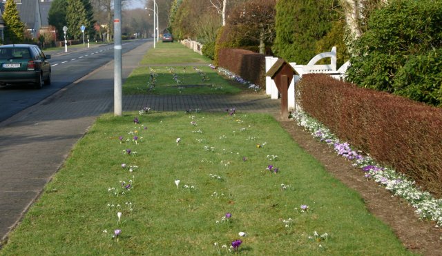 Der Frühling ist besonders gut an der Deelbrügger Straße in Lunestedt zu erkennen. Wenn jetzt die Sonne scheint, brechen die Blüten von Krokussen und Schneeglöckchen besonders gut auf.
