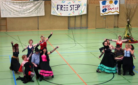 Für die große Frühlingsshow des TSV Lunestedt war die eigene Halle noch viel zu klein. Nach dem Einlaufen der Tanzgruppen zeigten elf Vereine in 24 Vorführungen ihre Leistungsfähigkeit. Zum Abschluss formierten sie sich zum großen Finale. Die „Ladybirds“ vom Bremerhavener Kulturladens Wulsdorf zeigten in farbenfrohen Kostümen „Uncle John from Jamaica“. Die „Two Step“ des TSV Lunestedt durften in diesem Jahr am Anfang mit ihrem Titel „Feel good lies“ auftreten. Die Erwachsenengruppe „Moortanzteufel“ aus Langendammsmoor begeisterte mit „Ameno“. Später zeigten die „tanzenden Moorteufel“ ihre Choreografie „Diamonds“. Die kleinen „Tanzmäuse“ des TV Lehe tanzten „Rock my life“. Das „Night Fever“ breitete sich aus, als die Erwachsenentruppe „Jazz for fun“ vom MTV Ahlerstedt auftrat. Lied der Okarina Die kleinen „Tamalu“ vom TSV Lunestedt kamen mit dem „Song of Ocarina“ daher. Von der SG Beverstedt waren „The 8 Devils“ dabei. Die „Pushy Cats“ – MTSV Selsingen – tanzten „The tide is high“. Die „Blue Sky“ wiederum vom Kulturladen Wulsdorf zeigten in ihrer Verkleidung mit Mützen, Schärpen und Ketten „Lil' Kim“. Später kamen sie noch einmal mit hinterrücks auf die Hose gedrucktem Namen „Blue-Sky“ und gaben „Dirrty“ zum Besten. Die „Dance Revolution“ des TSV Basdahl/Volkmarst forderte mit ihrem Titel, „Stirb an einem anderen Tag“: „Die another day!“ Vor der Pause zeigte noch „Lucada“ vom TSV Lunestedt – eine Formation der Trainerinnen der vier Kindergruppen – was sie ’drauf haben. Der Titel „Trouble“ führte die Zuschauer in einen Western-Saloon: Zwei Kerle sahen sich zunächst das Spektakel der Westernbräute an, wurden dann von den Frauen gefesselt und geknebelt und am Ende wieder als Cowboys gefeiert. Nach der Pause traten die meisten Vereine noch einmal auf – zum größten Teil mit anderen Gruppen. Die „Dance Devils“ aus Basdahl/Volkmarst tanzten unter einem Foliendach. Bei „Jazz for fun“ flogen Turnreifen durch die Gegend. Die „Free Stepp“ aus Lunestedt strippten nach einigen Takten die Melonen und Zylinder vom Kopf. Die Moderatorin setzte den Schlusspunkt: „Die Show ist nun vorbei – leider. Tschüss sagt Andrea Schneider.“