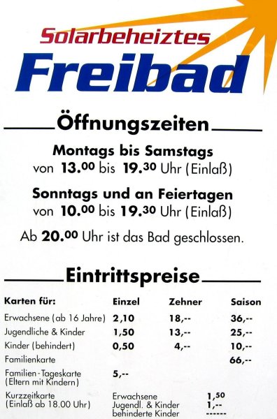 Im Lubi-Bad beginnt die Saison Am 12. Mai 2007 wurde um 13 Uhr im Lubi-Bad die Saison eröffnet. Sie dauert bis zum 16. September, bei schlechtem Wetter wird das Bad eine Woche früher geschlossen. Die Preise wurden nicht geändert. Auch die Öffnungszeiten sind gleich geblieben, lediglich bei schlechtem Wetter während der Saison wird das Bad gar nicht erst geöffnet.