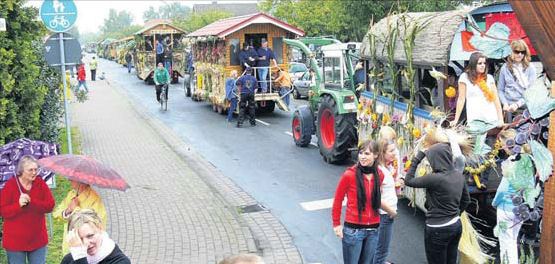 Umzug zum Erntefest dauert drei Stunden – 38 Wagen auf der Route – Viele Schaulustige trotz des regnerischen Wetters