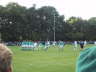Hautnah verfolgten viele Zuschauer in der Halbzeit das Elfmeterschießen zwischen Prominenten und Werders Torhüter Frank Rost. Werder geizt nicht mit Toren 20:0-Sieg im Fußball-Freundschaftsspiel vor 2500 Zuschauern über den TSV Lunestedt Lunestedt. Der TSV Lunestedt hatte vielleicht das Pech, dass einige Spieler des SV Werder gestern Morgen im Training in Bremen nicht ernst genug bei der Sache waren. So mussten sie am Abend einiges nachholen. 20:0 für Werder lautete dann das Ergebnis des Freundschaftsspiels gegen den TSV Lunestedt. Rund 2500 Zuschauer, darunter viele Kinder, waren von der Vorstellung der Bremer Profi-Fußballer sehr angetan. Schon eine Stunde vor dem Anpfiff waren die Holzbänke hinter den Barrieren voll besetzt. Die Rahmenbedingungen stimmten dazu, fast alle Mitglieder der Fußball-Abteilung des TSV Lunestedt waren im Einsatz, um dieses Freundschaftsspiel zu einem Fest zu machen. Werder spielte mit. Die Mannschaft geizte nicht mit Kabinettstückchen, Torschüssen und Kombinationen. Immerhin konnte der Kreisligist eine Viertelstunde sein Tor sauber halten, ehe die Torflut über den TSV Lunestedt hereinbrach. Vor allem in der Luft zeigten sich die Bremer überlegen. Die Hälfte der zehn Tore in der ersten Halbzeit fielen durch Kopfbälle. Über Arbeit konnten sich die Lunestedter Torhüter Haase und in der zweiten Halbzeit Jaspert nicht beklagen. Sie machten ihre Sache gut, Jaspert hielt sogar gegen Ailton einen Elfmeter. Es gab viel Beifall auf offener Szene für gelungene Aktionen der Bremer, aber auch für den unermüdlichen Einsatz der Lunestedter Spieler. Kräfte schwinden Dass deren Kräfte am Ende schwanden, ist nicht verwunderlich. Da aber zeigte sich echter Sportsgeist auf dem Feld. Der Bremer Dieter Eilts half Chris Müller, der gegen Ende des Spiel mit einem Wadenkrampf auf dem Boden lag, wieder auf die Beine. Dass das Ergebnis letztlich mit 20:0 für den Bundesligisten endete, kommentierte Johann Bock, Ehrenmitglied des TSV Lunestedt so: „Das ist die späte Rache.“ Bock hatte im Jahr 1947, vor fast 50 Jahren, für die Mannschaft des TSV Westerbeverstedt gespielt, die damals den SV Werder mit 7:2 Toren bezwang. TSV Lunestedt: Haase ( ab 46. Jaspert); Seedorf, Bruns (ab 75. Alksnait), Becker, Voigt, Oldenburg, Dennis Müller (ab 46. Marcel Schmidt), Harms (ab 46. Kampen), Chris Müller, Danilo Schmidt, Corovic (ab 46. von Thun). Werder Bremen: Rost ( ab 46. Borel), Skripnik, Verlaat, Blank, Stalteri (ab 56. Klasnic), Frings, Tjikuzu, Kern, Bogdanovic, Silva (ab 76. Eilts), Ailton. Schiedsrichter: Ute Hagenah (TSV Lunestedt). Tore: Ailton (15., 27., 72., 79.), Kern (22., 37., 59., 66.), Frings (23., 48.), Bogdanovic (30., 45., 80.), Silva (35., 40., 42.), Blank (54., 90.), Klasnic (60., 83.)
