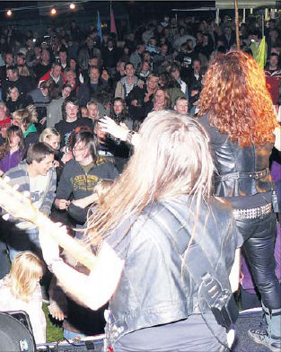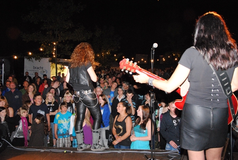 Nahtlos ging es in das Nachtprogramm über, das von der AC/DC-Tributeband „Black Rosie“ angemischt wurde. Doch noch bevor die Black Rosies die Bühne eroberten, setzten die Dragons den Himmel in Brand. Das Spiel mit dem Feuer ließ den Atem der Zuschauer stocken. Meterhohe Flammen schossen in den Himmel. Dazu setzten die Powerfrauen die ersten Akkorde und eröffneten ihr Feuerwerk aus dem Fundus der seit über 30 Jahren erfolgreichen Hardrockband AC/DC. Die stimmgewaltige Frontfrau Karo Blasek stellte den Kontakt zum Publikum her, das begeistert mitging. Bei bekannten Titeln wie „TNT“ gab es kein Halten mehr, es wurde mitgesungen und getanzt. Bis weit nach Mitternacht rissen die fünf Profimusikerinnen die Menge mit.